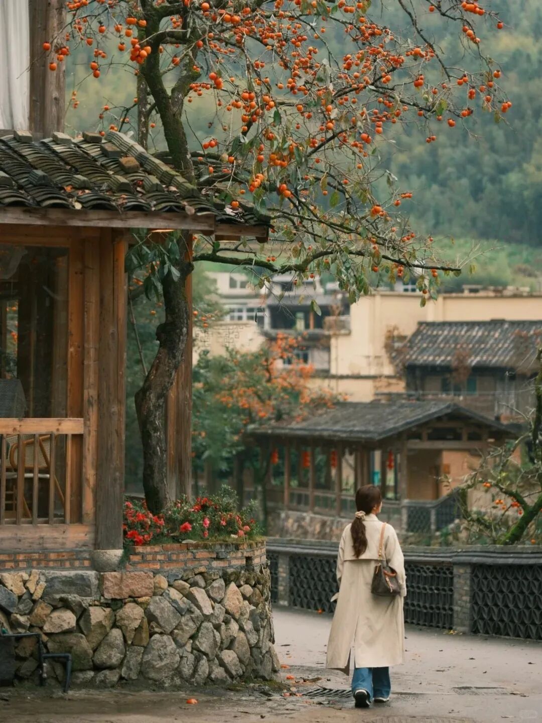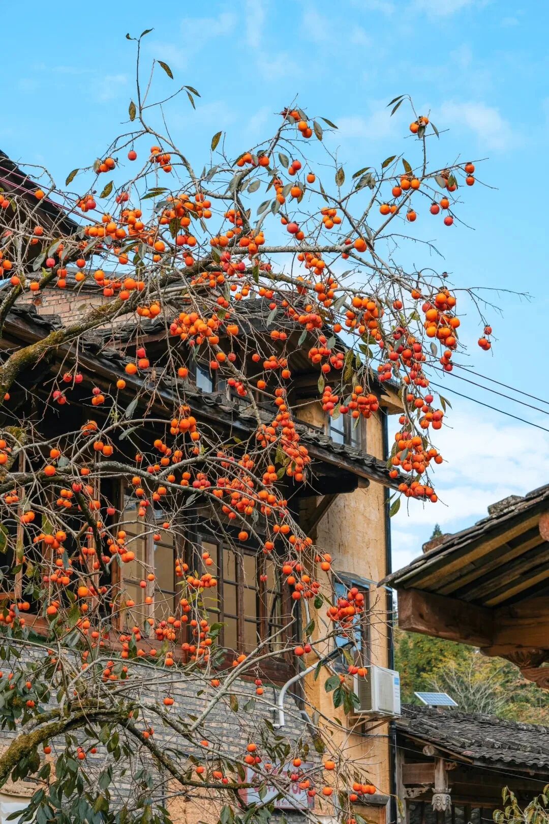 当一个个像小灯笼一样柿子,高高挂在枝头。它们无序地肆意地点缀着古村的平和。阳光透过薄雾、炊烟,将这里晕染出秋日的温婉。