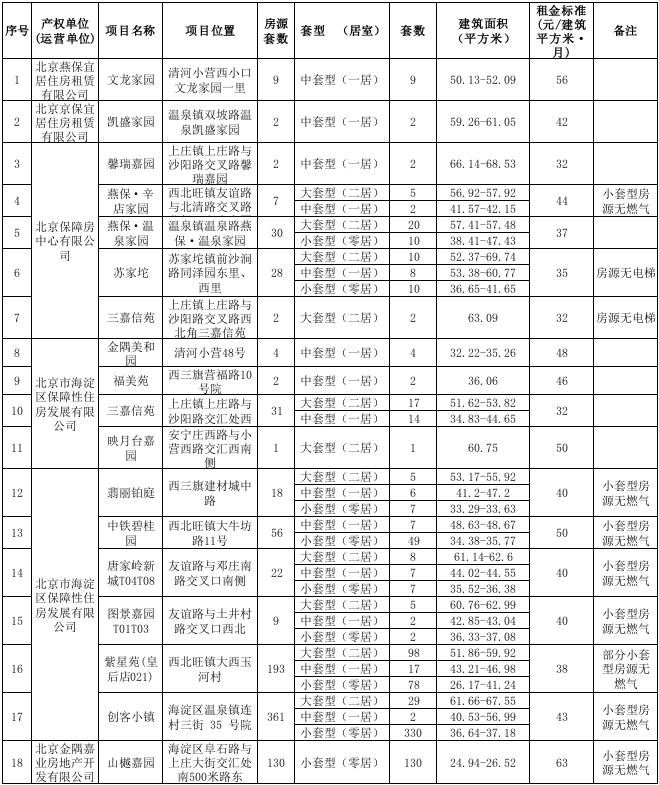 此次海淀区配租的公租房共907套。其中,大套型200套,中套型84套,小套型623套。 这些公租房源分布在18个项目中。有位于北五环外清河小营的,有新兴的永丰片区的,也有山后地区的。