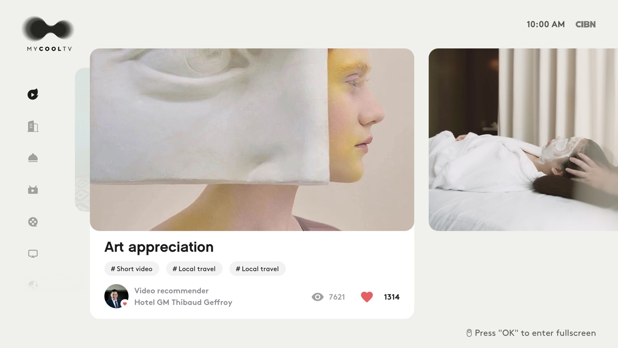 旅游新媒体平台是比利信息目前的基石业务。2016 年,比利信息创始人王洋将互联网电视技术应用到酒店客房娱乐场景,打造 MYCOOLTV 这一核心产品,2021年,比利信息正式将业务升级为“旅游新媒体平台”,即在提供技术支持之外,又增加了内容与版权服务,旨在为旅行者提供本地化历史、美食与建筑等内容,“类似一个大屏版的小红书或抖音”,王洋说。