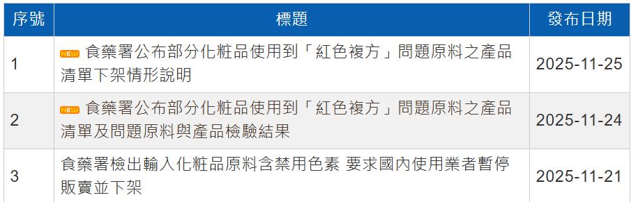 11月21-25日,台湾食药署发布三份公告,正式通报了“苏丹红Ⅳ”事件中问题原料商、原料及产品的检验结果。