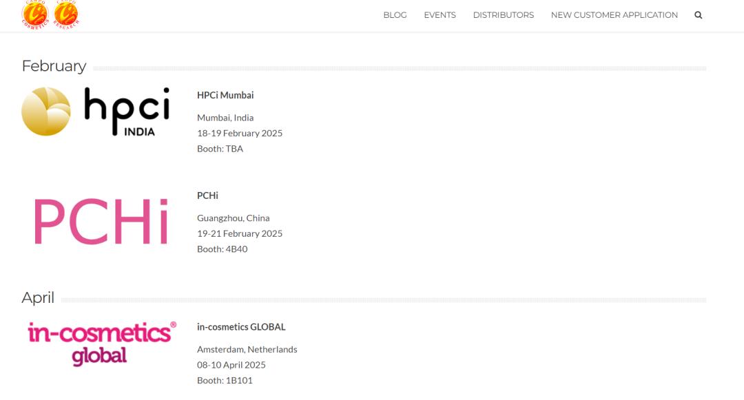 同时,聚美丽还发现,Campo Cosmetics现活跃于全球各大原料展,包括PCHi、HPCi Mumbai等。