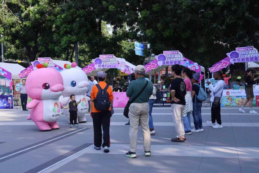 活动当天,1906科技园东广场同步举办了“新潮创意&岭南匠心”广州潮玩产业秀,名创优品、中华商务、TANWAN、萌趣、DiMOND玩意制造、呼噜FooLu、漫爬奇宠馆、鬼马粤学堂、广州逸彩、鼎壶春手工银器等十家企业展示了它们的潮玩产品与设计。各类元素与潮玩的碰撞,吸引了大量年轻消费者驻足体验。