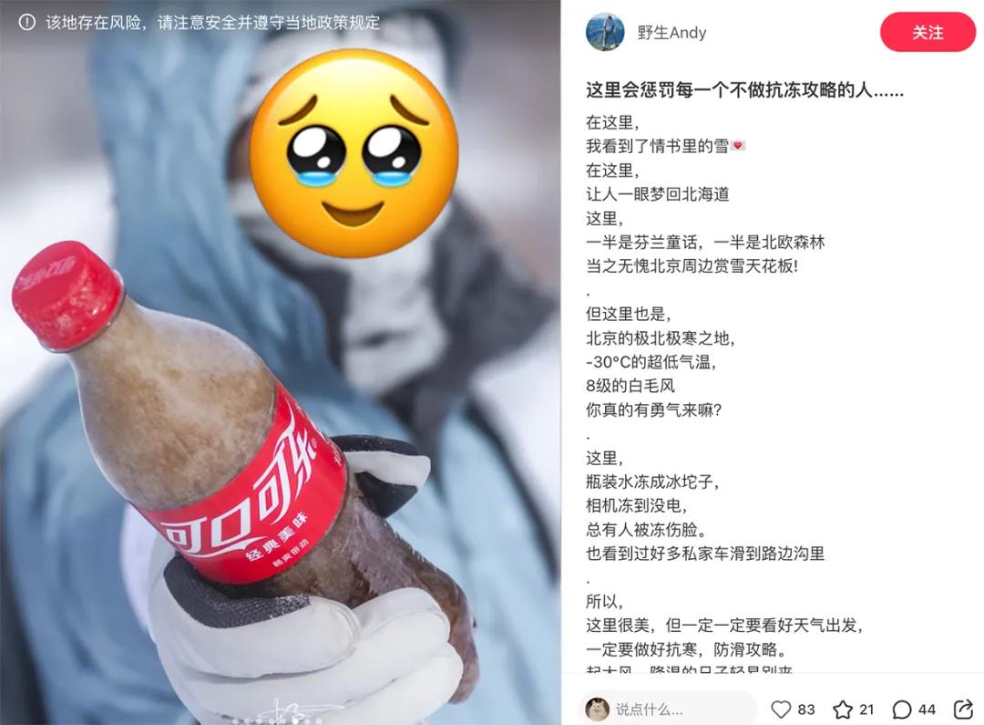 零下三十度徒步,没带保温杯,可乐都成冰沙了;