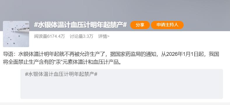 其实国家药监局,早在 2020 年就已经通知过了。2026 年 1 月 1 日起,禁止生产含汞体温计和含汞血压计产品。