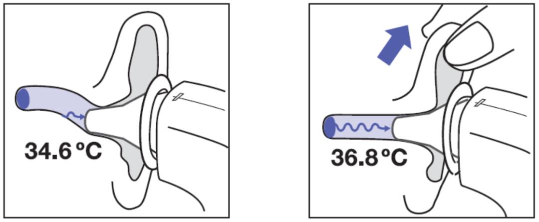 因为耳温枪主要是测试我们耳朵鼓膜的温度,所以得把耳道完全露出来。