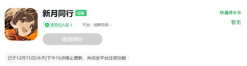 12月15日,《新月同行》在上线417天后,宣布游戏将于今日版更后停止更新。同时,游戏也已在App Store、好游快爆、B站等渠道下架。停更过后,玩家仍可正常登录游戏。