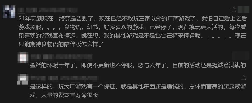 某二游大厂中层曾说,他们的第一款游戏之所以不停服,就是为了让玩家知道玩这家公司的游戏,自己的利益永远能得到保证;而对于失败的团队来说,在玩家对厂商越来越敌视,越来越不信任的大环境下,用诚意来对抗这种“赛博案底”,说不定也会是团队未来东山再起的资本。