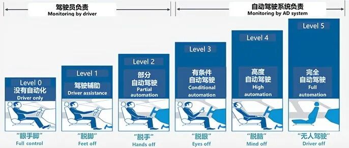 简单说一下什么是 L3 级自动驾驶吧,里头的 L 其实就是 Level 等级的意思。按照自动驾驶的分级标准,自动驾驶总计可以被分为下面这样的 L0-5 的分级。
