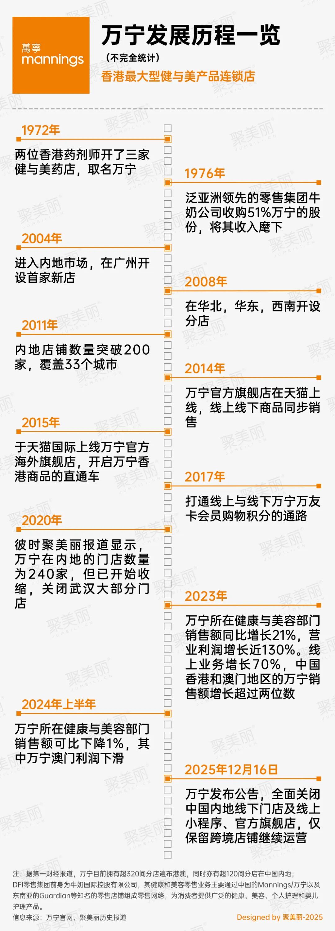 而如今随着万宁闭店公告的公布,标志着这一在中国内地深耕长达21年的港系美妆连锁正式落幕。