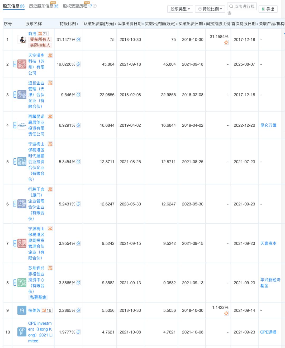 天眼查App信息显示,俞浩直接持有追觅31.1477%股份,最终受益股份为31.1584%。此外,昆仑万维持股6.9291%,系第一大外部股东;华兴新经济基金合计持有4.8775%股份;天壹资本和CPE源峰均持股3.9554%;云锋基金持股1.758%;IDG资本持股1.2708%。