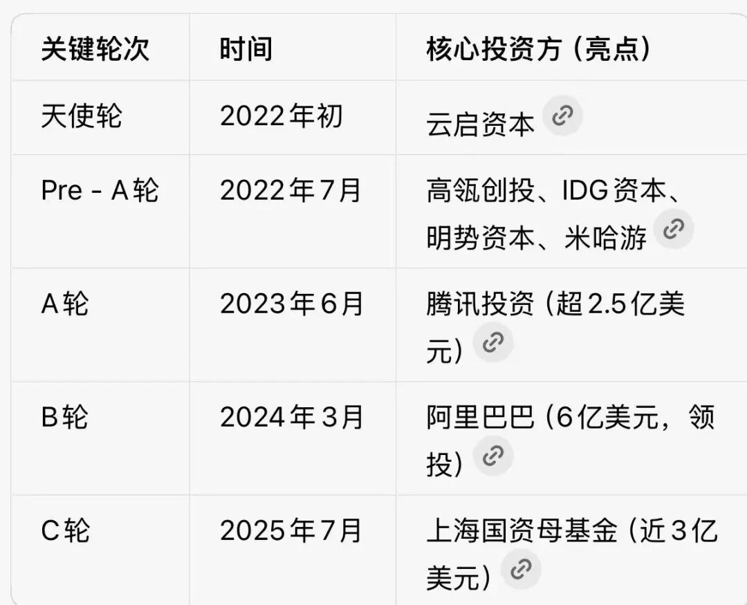 MiniMax则于今年7月完成由上海国资母基金等出资的近3亿美元C轮融资后,估值已达40亿美元(约300亿元)。此前数轮融资中,投资方包括阿里巴巴、腾讯投资、高瓴创投、云启资本、米哈游、明势创投、IDG资本等。