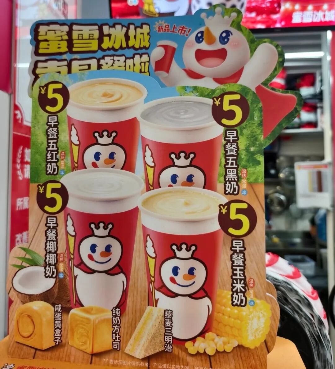 其实单论价格,雪王的早餐套餐已经颇具诚意,想要和其他茶饮、咖饮类同行正面刚的心思也很明确。瑞幸咖啡、库迪咖啡、M Stand、奈雪的茶等品牌都早已推出过早餐套餐,并且一度把价格打到9.9元起,雪王入局,仍然首先从价格上拉开了距离。