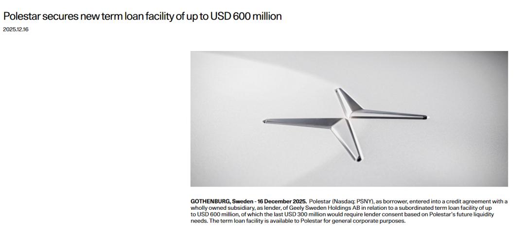 这次虽然是以贷款的形式发放,不同于股权注资,但本质上都是由股东出资,这笔钱将由吉利瑞典控股AB的一家全资子公司出资,额度最高为6亿美元,而且是次级定期贷款,具体期限极星汽车并未透露。