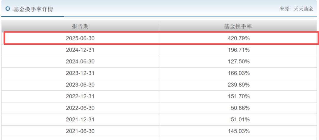 天天基金网数据显示,截至2025年6月30日末,前海开源人工智能基金上半年的换手率达420.79%,是2024年同期的3倍之多。
