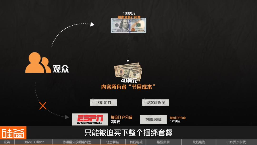 一个不看MTV的老年人,为了看新闻或者为了看ESPN去看体育赛事,就不得去买整个的一个月100多刀,甚至更贵的一个大套餐,这时候他们也在为MTV这样的公司买单。