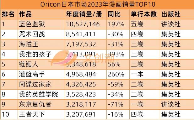 日本漫画2023销量TOP10:《蓝色监狱》登顶,《灌篮高手》回归畅销榜