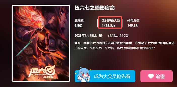 仅在B站就有约1500人追番的国产动画《伍六七》,今年也有一款徽章产品销售超千万。配合明年《伍六七》游戏上线,它储备了一批精品产品,比如与泡泡玛特共鸣等品牌展开合作。