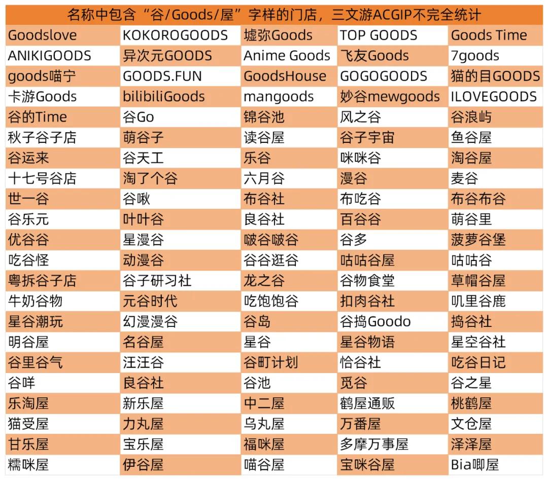 对于当时那些想要开谷子店的年轻人,取名字已经不是一件容易的事。“布谷”“布吃谷”“布谷布谷”,“谷谷逛谷”“咕咕谷屋”“咕咕谷”,“星谷”“星谷物语”“星漫谷”“星空谷社”,“乐淘屋”“新乐屋”“甘乐屋”“宝乐屋”……