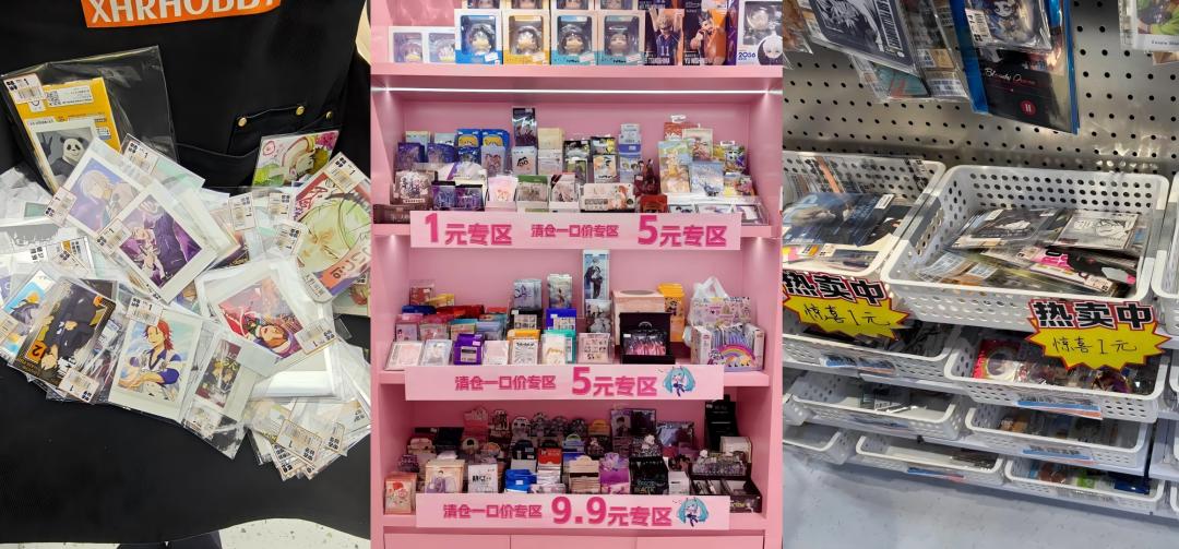 与此同时,谷子的消费者 发现,此前他们原价甚至溢价抢购的吧唧或立牌, 最近 纷纷七折、五折、三折、一折,甚至被放进了 一元 “垃圾筐”供人翻捡,自己忽然就成了“早买早享受”的冤大头。
