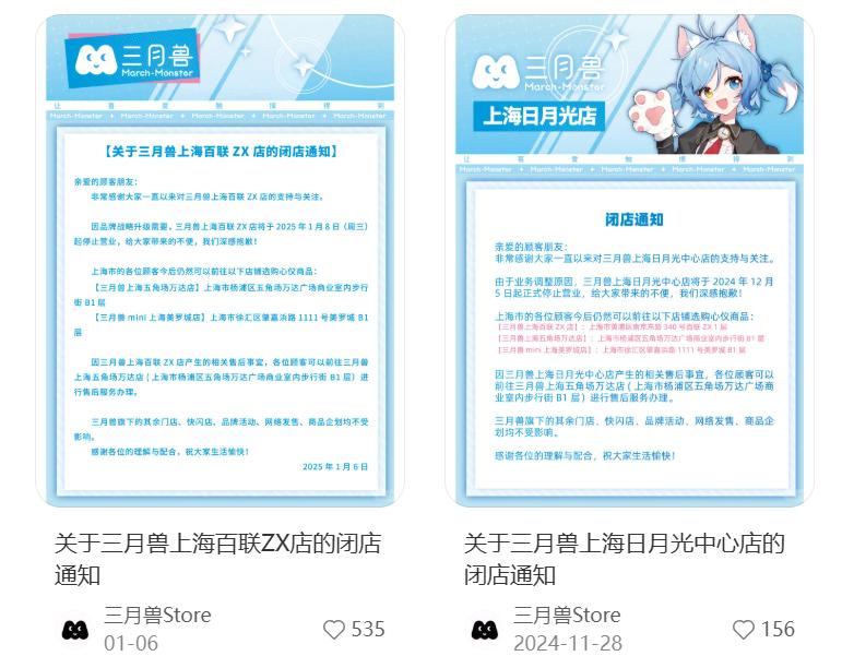 最为典型的是手握众多日本品牌代理权的三月兽,去年11月底和今年元旦后,陆续关掉上海日月光中心店和上海百联ZX店。