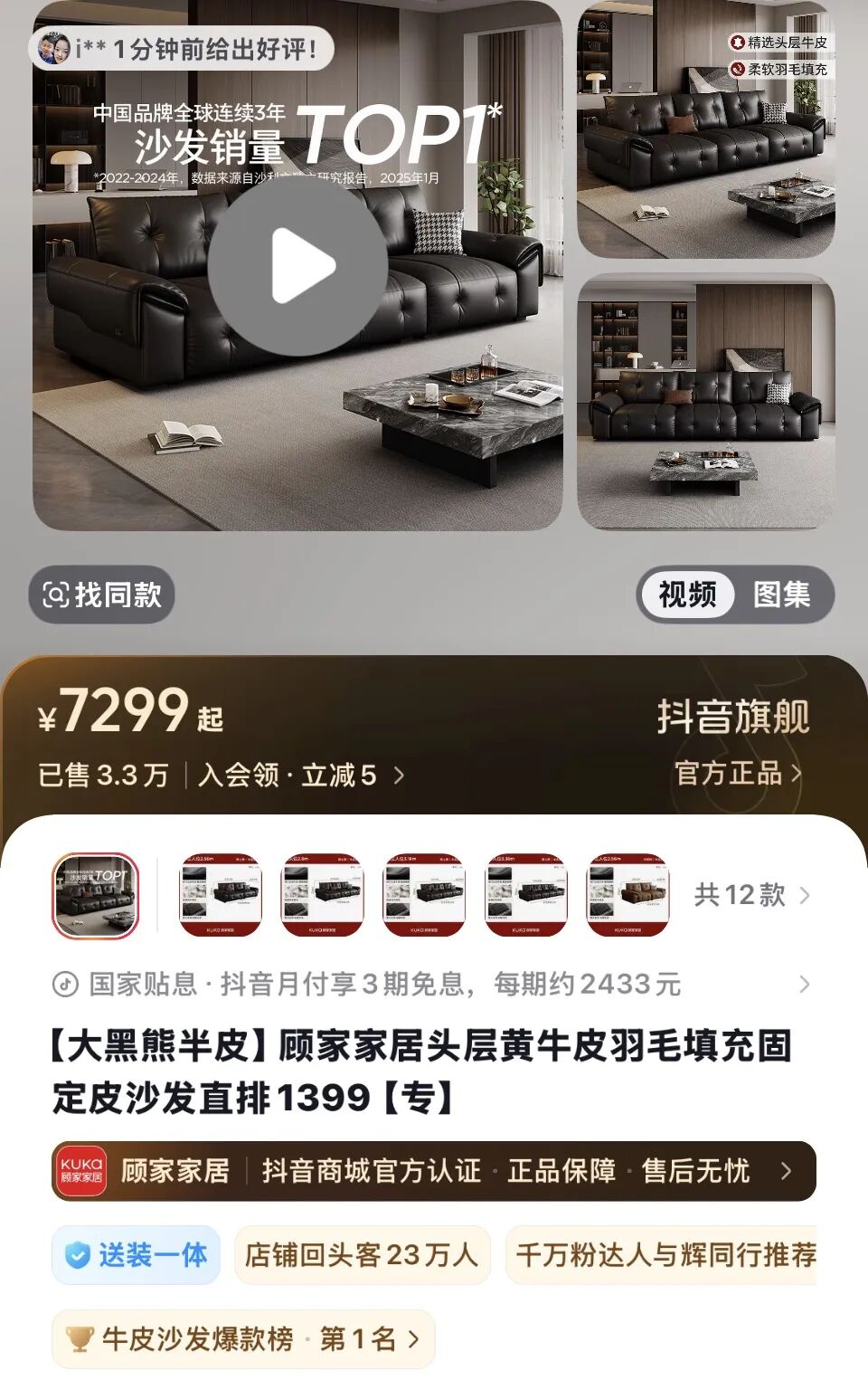 图源:抖音 顾家家居官方旗舰店