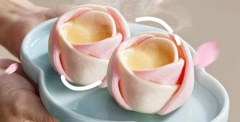 蒸笼头的“玫瑰奶酪馒头”,则设计成玫瑰花的造型,“玫瑰花”的“花蕊”,就是奶酪馅料。