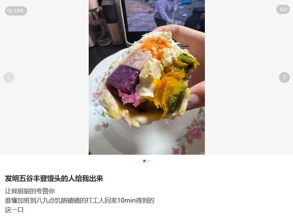 比如有的打工人,加班到八九点饿着肚子回到家,把一块“五谷丰登馒头”放到蒸锅里,10分钟后饥饿的胃和疲惫的灵魂都得到了救赎。