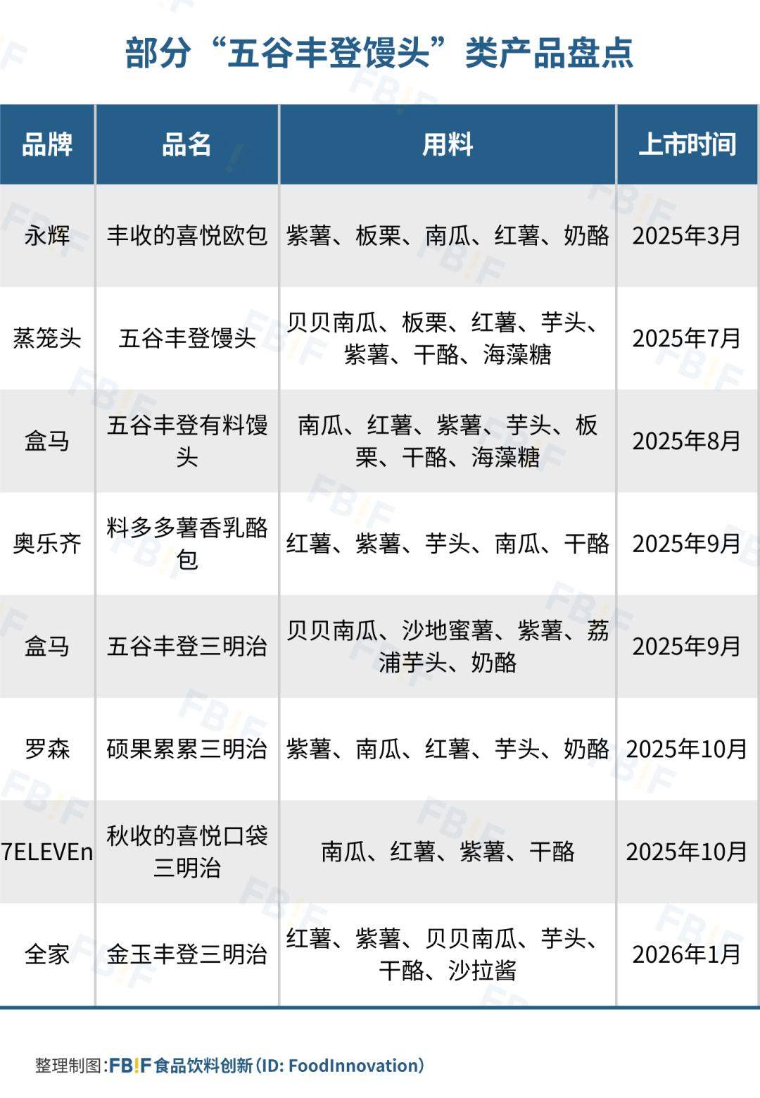 2025年以来,多个品牌都推出了“五谷丰登馒头”类产品。总体来看,这些产品都离不开这“三件套”:塞得满满当当的粗粮、点缀其中的干酪和一个有着“丰收”寓意的命名。