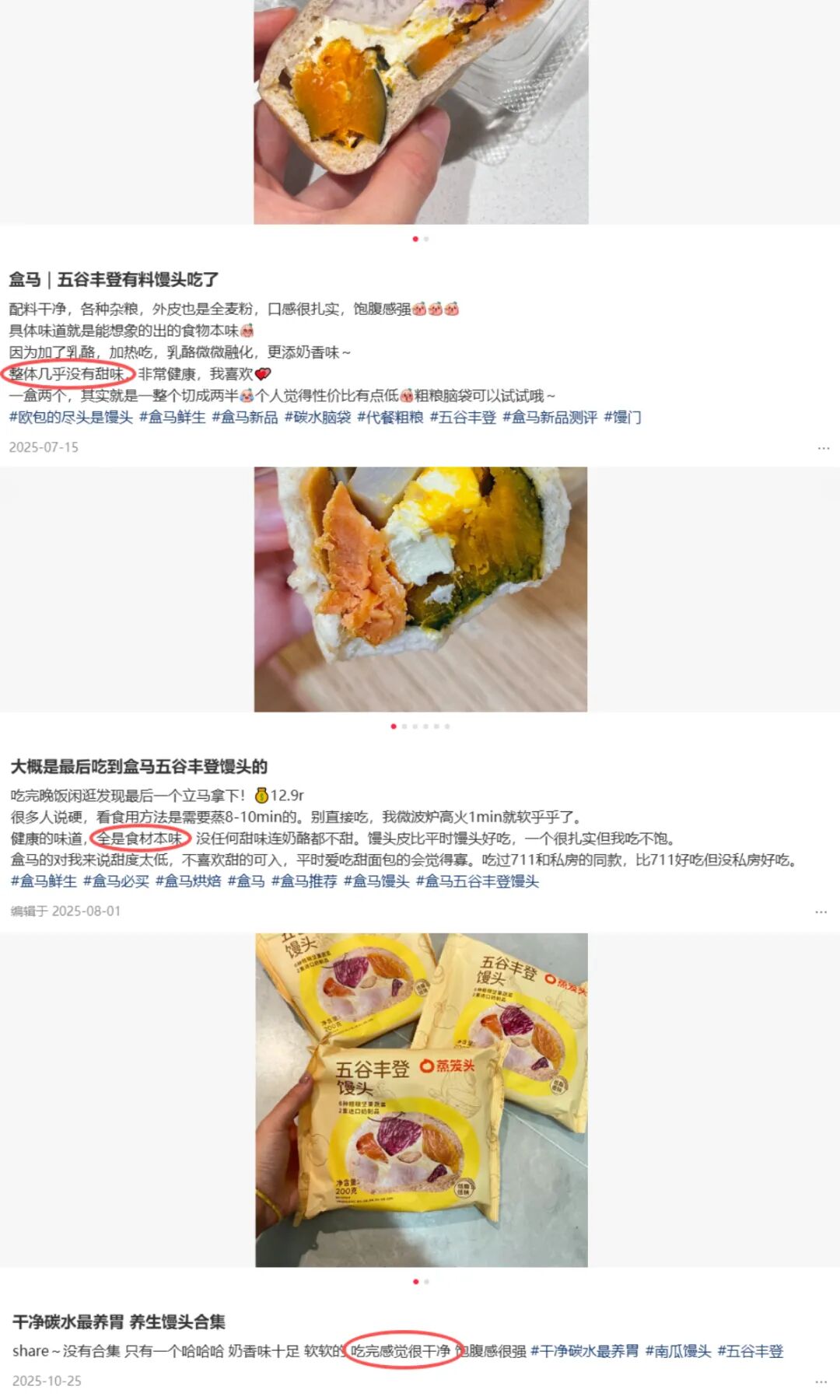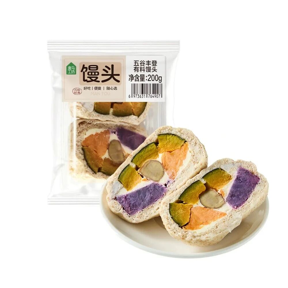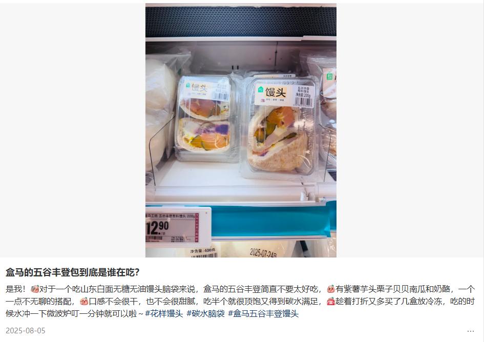 2025年8月,盒马也推出了一款“五谷丰登有料馒头”。