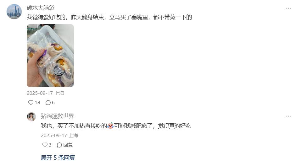 还有健身的人,训练后连蒸都不蒸,直接把一块馒头塞到嘴里,练后“碳水窗口期”的焦虑忽然减少大半。