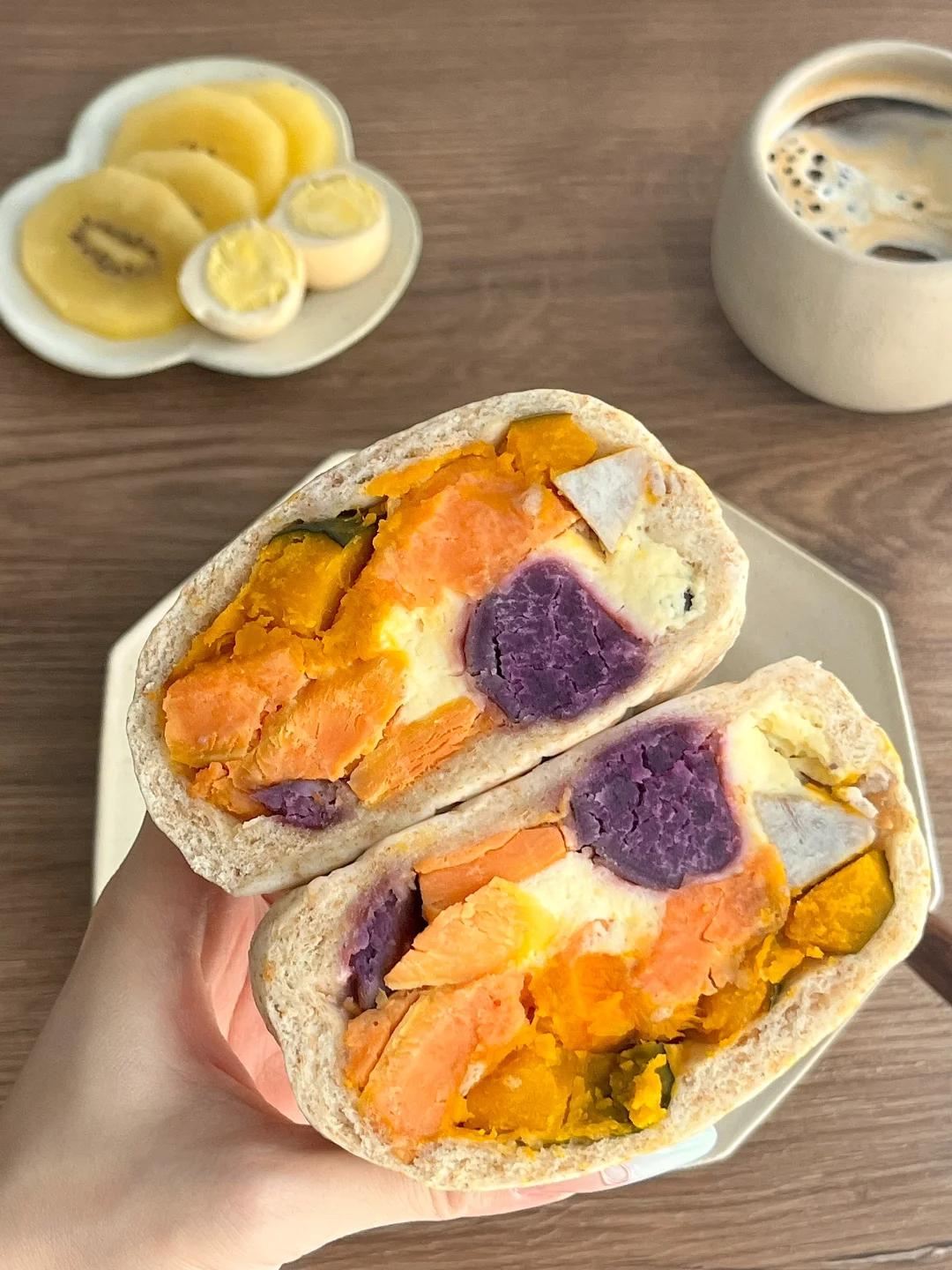 除了奶酪,粗粮也是“加馅馒头”中常见的馅料。紫薯、芋头、南瓜、山药都被制成馒头馅料。