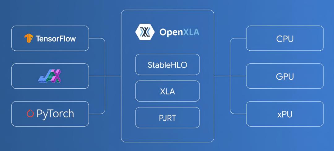 打破这种路径依赖,谷歌采取了“硬件进化、软件开源”的双重攻势:其 XLA 编译技术,不仅支持谷歌系的 TensorFlow 和 JAX 框架,也能适配主流开源框架 PyTorch(该框架在全球机器学习开发应用中占比超过80%)。谷歌联合多家科技巨头发起的 OpenXLA 开源项目,打通了从多框架模型到不同硬件的统一编译路径;近期与 Meta 合作推进 TorchTPU 项目,实现 TPU 对 PyTorch 的原生支持,使开发者可将 PyTorch 模型无缝迁移至 TPU。
