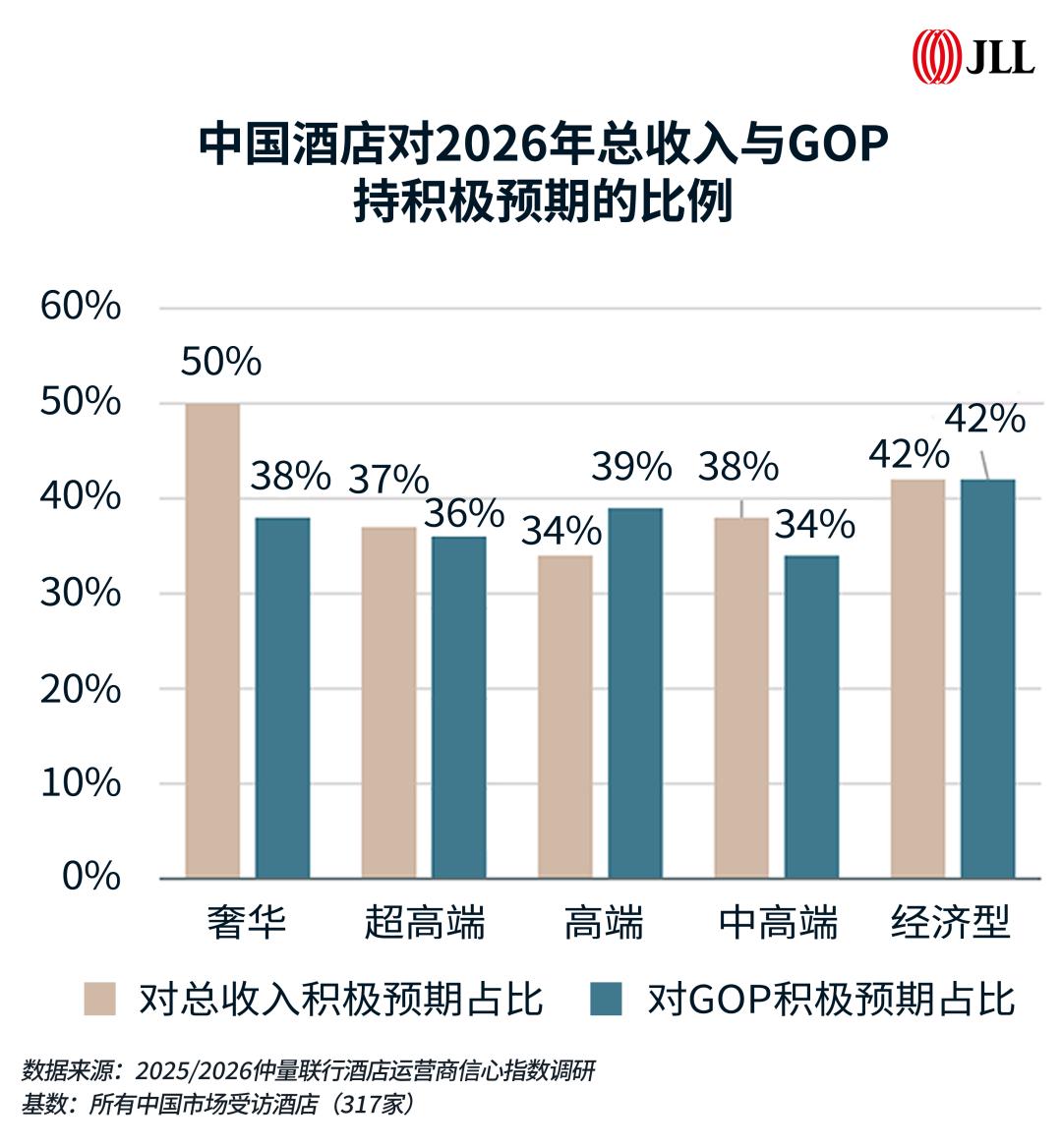 另据仲量联行发布的2025/2026中国酒店运营商信心指数调研显示,尽管市场前景谨慎,但度假型酒店相较城市型酒店展现出更高的积极预期与信心。